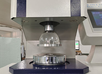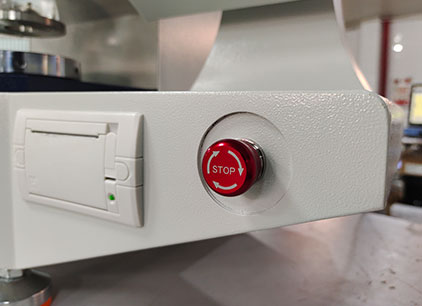 在儀器密封的油缸和壓紙座的容腔內(nèi),裝滿甲基硅油作為壓力傳遞的介質(zhì),當(dāng)電機帶動活塞勻速前進時,橡皮膜受到硅油的加壓而突起,此時夾持在膠膜上方,被上下夾盤固定住的試樣,均勻受力,直到試樣破裂,處理芯片鎖住最大壓力值,通過液晶屏顯示該壓力值,此壓力值即為本次試樣的耐破度。
