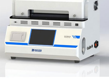 儀器采用熱壓封口法,將待封試樣置于上下熱封頭之間,在預先設定的溫度、壓力和時間下,完成對試樣的封口,通過在不同的溫度、壓力和時間等試驗條件下對試樣熱封合,即可獲得試樣合適的封裝工藝。